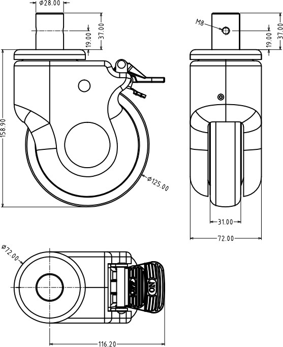 單/雙全塑腳輪