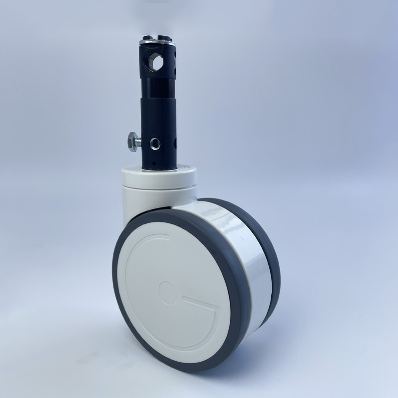61系列是配有中心鎖定、全鎖定的豪華中控腳輪, 精鋼壓制多層框架主體,精密滾珠軸承位于旋轉頭內,輪架配有合成材料制的輪蓋, 適用鎖定控制桿配有凸輪孔的輪桿,選配長桿和短桿式. 聚酰胺制輪芯, 熱塑性彈性體注塑輪胎面, 帶側蓋,精密滾珠軸承,密封結構防水防油防纏繞。